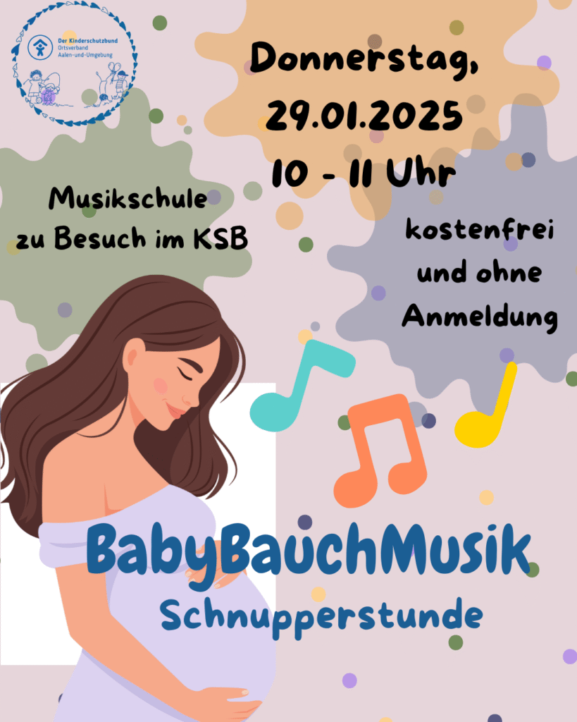 Herzliche Einladung an alle Schwangere! Die Musikschule kommt zu Besuch in den KSB. Wir laden Euch herzlich ein auf eine Schnupperstunde BabyBauchMusik. Eine Stunde mit Bewegung, Entspannnng und Musik, Atem und Stimmübungen. Kommt vorbei. Die Schnupperstunde kostet nichts, ihr braucht euch nicht anzumelden – kommt einfach vorbei. Wir freuen uns!